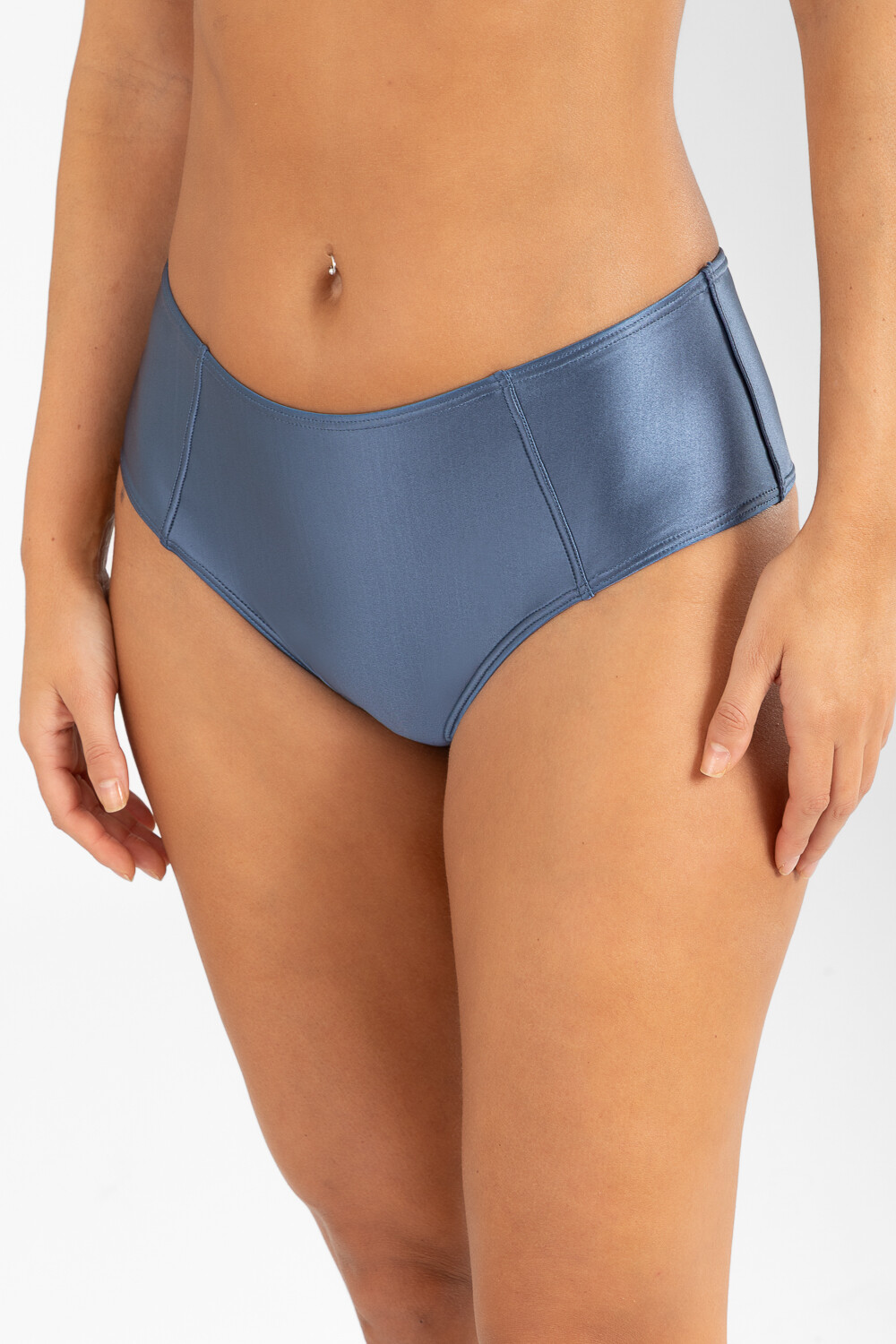 Bombacha tiro alto, con cortes frontales para una silueta más entallada y que le otorgan un toque vintage. Parte trasera con cobertura media, ideal para cuerpos medianos y grandes. Por ser tiro alto, ejerce control de abdomen.