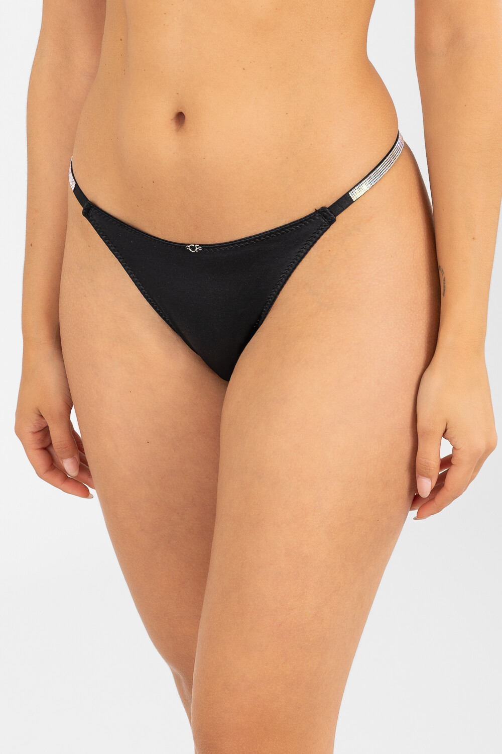 Colaless con tiras laterales con detalles de strass. Detalle metálico CF en el frente. Diseño femenino y elegante que aporta un toque de sofisticación.