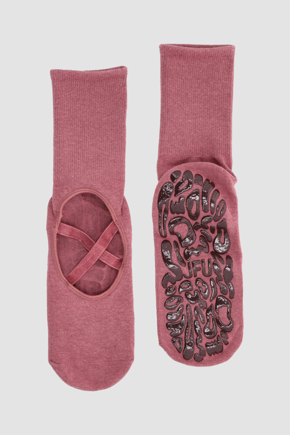 Media pilates con antideslizante 1/2 caña y elasticos en empeine - Terracota