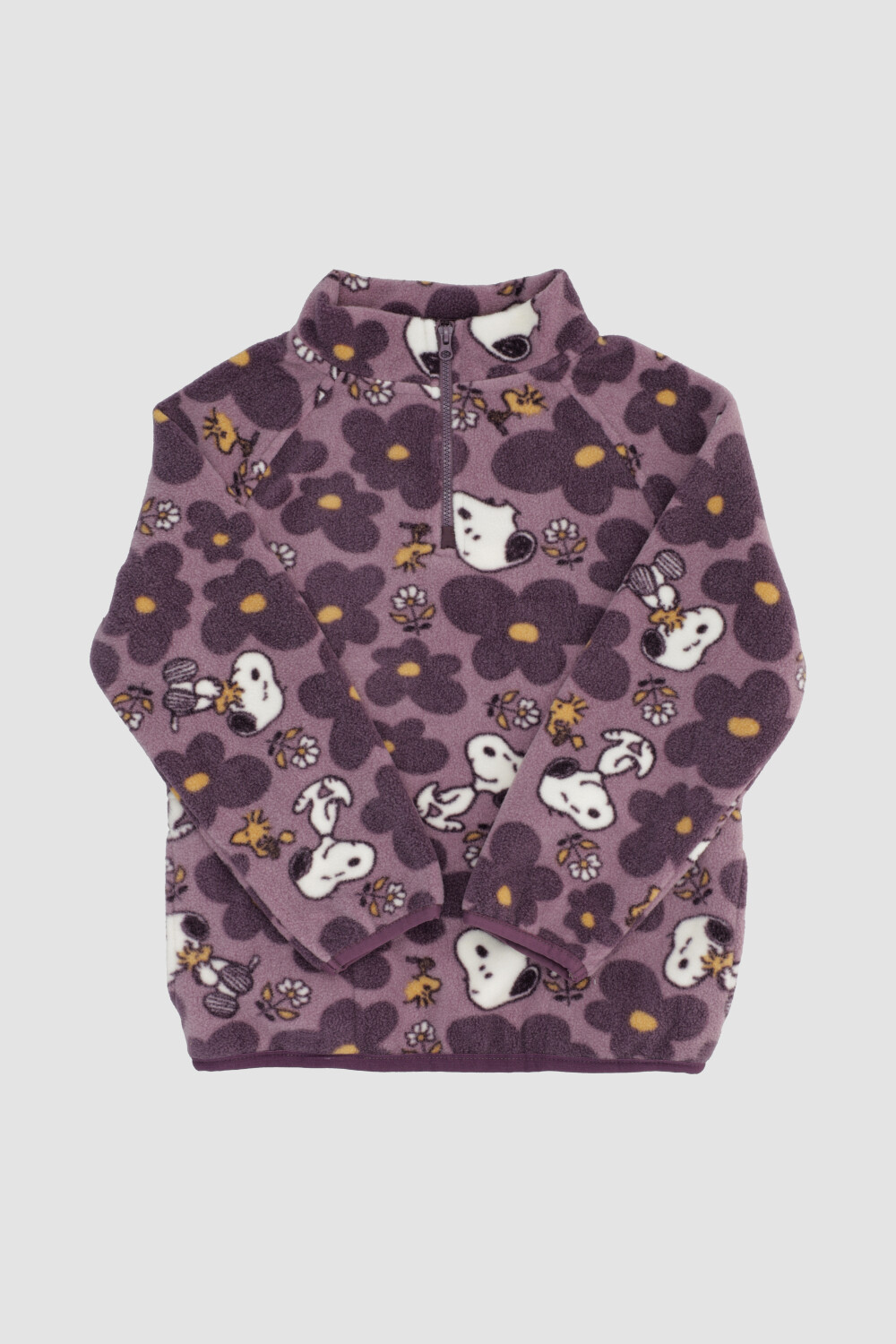 Buzo en tela polar estampada super suave y calentito, con cuello alto y cierre frontal. 39863062 https://sisi.com.uy/catalogo/peanuts-polar-buzo-lila_39863_062