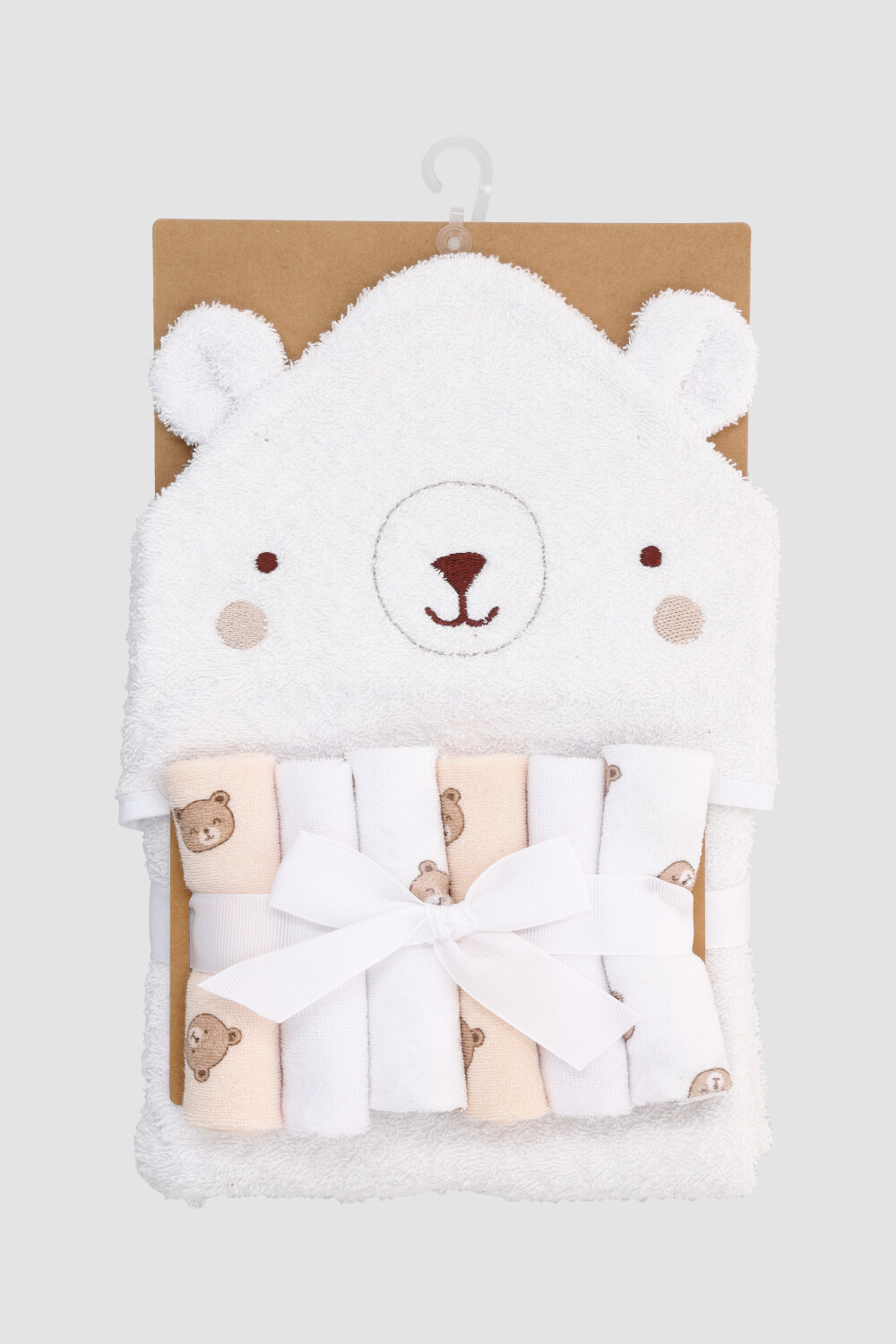Set toalla con capucha + 6 babitas para bebe - Marfil